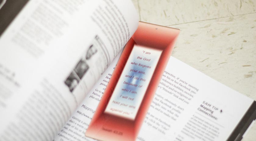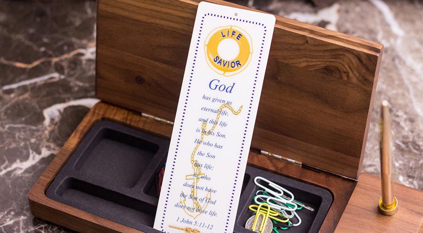 Our most popular way of promoting particular versus or prayers. Customize it to a meaningful shape or size, with or without a hole in case you want to put a special ribbon on it or beading.