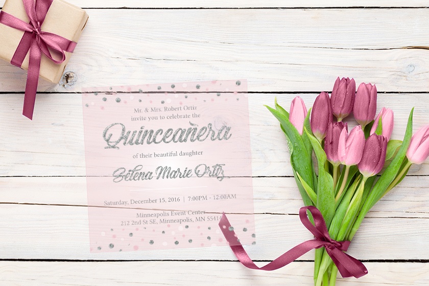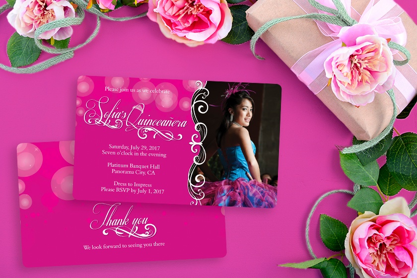 You can also get a free digital proof of your own Quinceanera invitations, just upload your logo or a photo to start your proof.